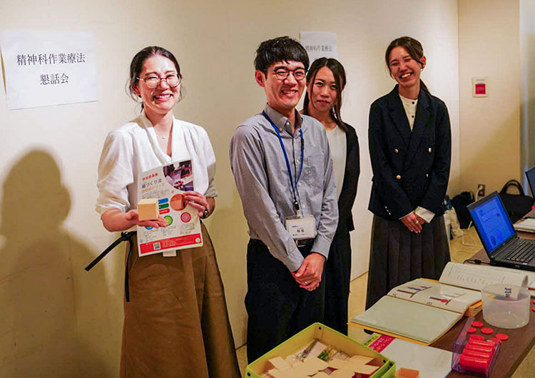 一般社団法人島根県作業療法士会主催のイベントにて、県内精神科作業療法士の皆さんと一緒に当院のプログラムや評価法について紹介しました。病気によって低下した認知機能を改善するNEAR。また、箱を作り、振り返る一連の作業を通し、対象者の作業遂行能力・対人機能などを知る箱作り法について紹介しました。