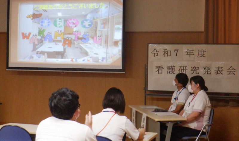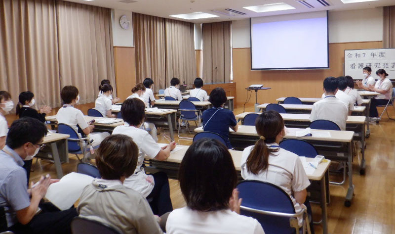 当日は、看護局職員だけでなく地域連携室職員も参加し、日々の実践を振り返り、研究活動を通して得られた成果や課題を発表しました。質疑応答では活発な意見交換が行われ、今後の看護実践や患者さんへのケアの質向上に向けた新たな視点を得る機会となりました。