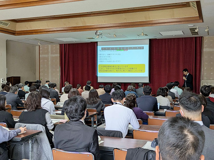 作業療法士が県職員の方に対して、当院で行っている認知行動療法に基づいたストレス対処について話をしました。